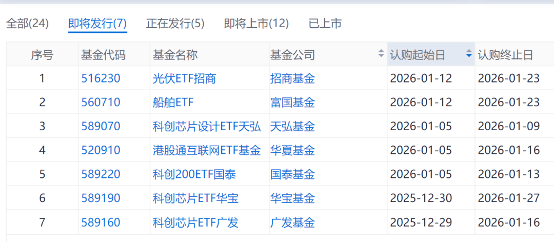 根据Go-Goal ETF数据,2025年最后三个交易日将有2只ETF发行,分别是科创芯片ETF华宝、科创芯片ETF广发。
